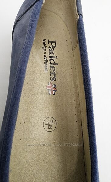 Кожаные удобные балетки туфли лодочки PaddersБалетки известного английского производителя ортопедической обуви Padders, верх – нубук, внутри кожа + текстиль,Указан UK5 подойдут на 37 размер, вся длина по стельке 24 см, ширина в самой широкой части спереди 8.2см.