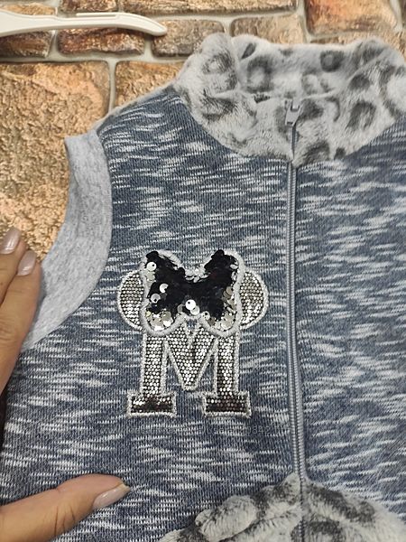 Жилетка для девочки с паетками перевертышамиСтильная и красивая теплая жилетка, должна быть в гардеропе у каждой маленькой модницы. Жилетка застегивается на молнию. Впереди есть теплая меховая муфтока выполненая в виде двух кармашков. Украшена впереди жилетка апликацией из паеток. Воротник меховый - стоечка. Передняя часть жилетки внутри с начесом. Спинка искуственный мех с узором на лицевой стороне.