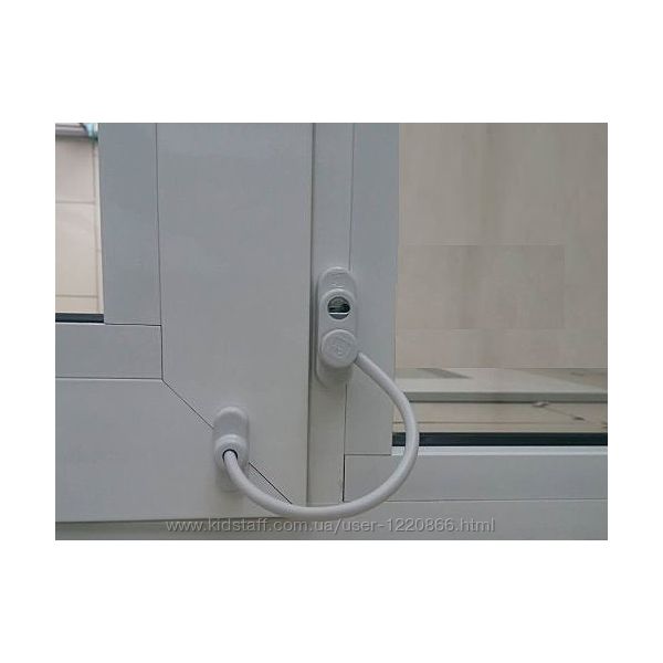 Подробное описание: Блокиратор окна с тросом. Белый, коричневый