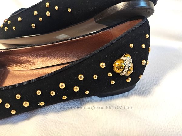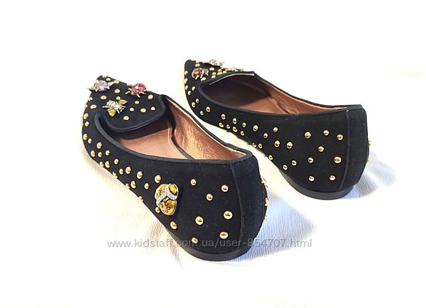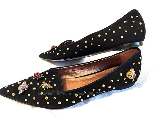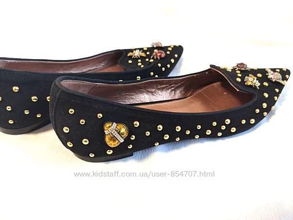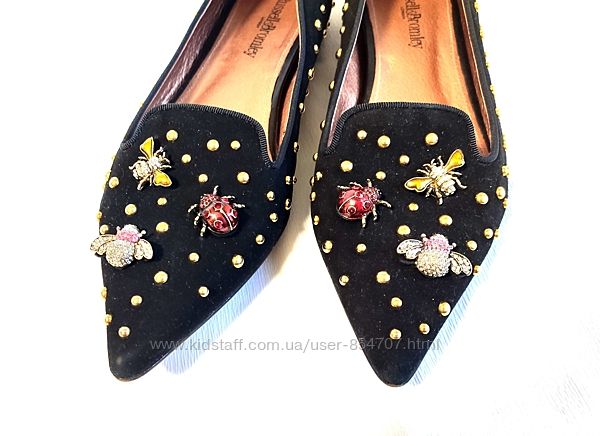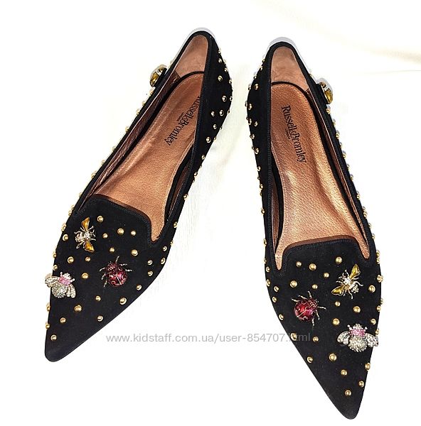 Туфли балетки замшевые гламурные черные Russell & Bromley Flatbug (размер 40-41)Испания. Модель Russell & Bromley Flatbug Big Trim Flat. Изготовлены из качественной, роскошной черной натуральной замши. С острым носком, на плоской подошве. Отделка заклепками в виде насекомых, инкрустированных драгоценными камнями (по информации с официального сайта производителя . Подкладка из натуральной кожи, стелька кожаная, мягкая комфортная.