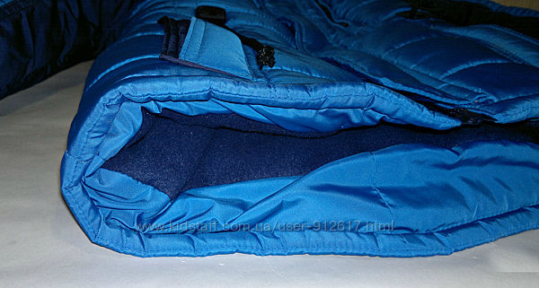 Верх изделия ― плащевая ткань синего цвета с тёмно синими вставками, соответствует требованиям моды сезона, а грамотно подобранная цветовая гамма делает её практичной и стильной.