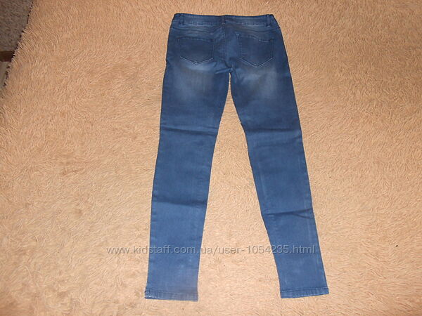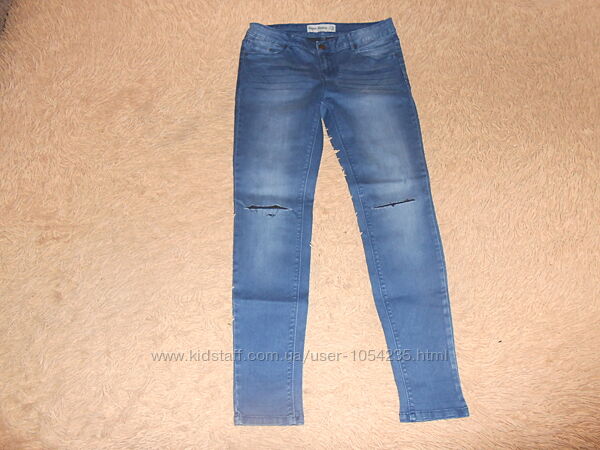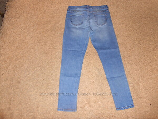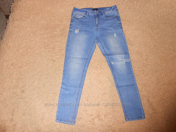 5. Джинсы с разрезом на одной коленке на рост 164-170 см., на возраст 14-15 лет "F&F": длина по внешнему шву - 93 см., по внутреннему - 66 см., ширина пояса - 38 см., ширина бедер - 42 см. Застегиваются на пуговичку и змейку, впереди и сзади по два кармашка, впереди потертости, на одной коленке разрезик. Материал: 89% хлопок, 8% полиэстер,3% эластен. Цена: 100 грн.