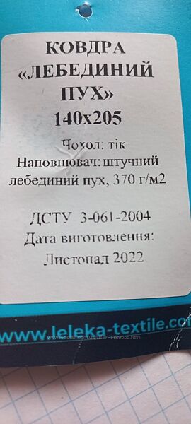 Подробное описание: Ковдра зі штучного лебединого пуху ТМ Лелека