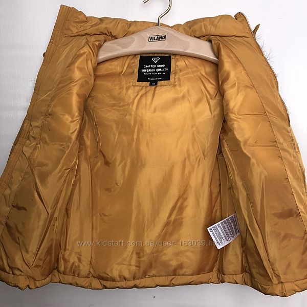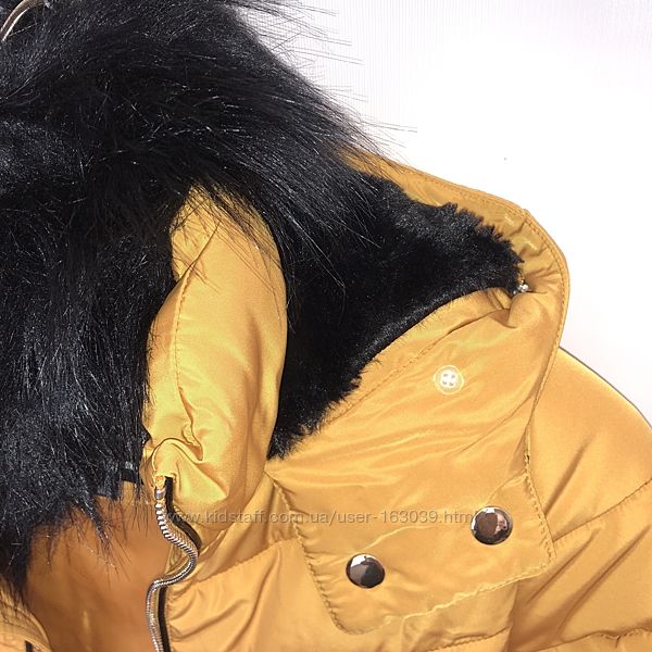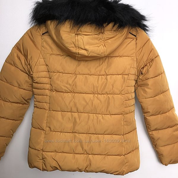 Утепленная курточка желтого цвета со съемным мехом на капюшоне. Два кармана на молнии. Воротник-стойка. Курточка застегивается на молнию. Есть защита подбородка от защемления. Наружный слой - полиэстер. Подклад - полиэстер, внутри дутый невесомый утеплитель. Есть внутренние трикотажные манжеты от задувания и снега. Капюшон не отстегивается, мех на капюшоне отстегивается, внутри капюшон утеплен дополнительно мягеньким коротким мехом Размер 146 Замеры р-ра 146: Длина по центру спины - 56 Ширина в груди (под рукавами) - 42 Ширина в плечах - 36 Длина рукава - 56+1 Длина рукава от ворота - 66+1 Ширина в талии - 40 Ширина низа - 44