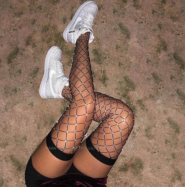 Чулки сеточкой со стразами