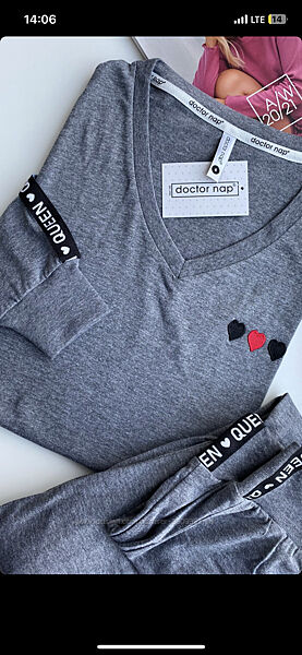 Спортивный и одновременно очень стильный вариант домашней одежды от польского бренда Doctor Nap - то, что нужно!V-образный вырез и рукава украшены лентой с надписью Queen.