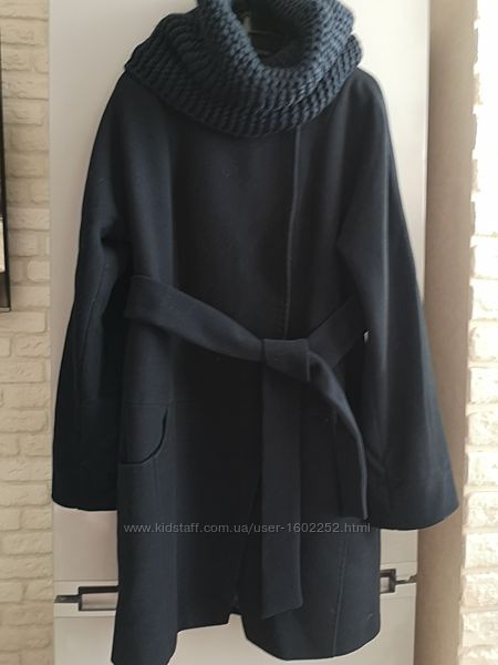 Пальто весна-осень VLADLEH, шерсть 44-46р.Шикарное на кнопках, два кармашка, пояс, тёмно синий цвет, в идеальном состоянии, шарф вязаный в комплекте!