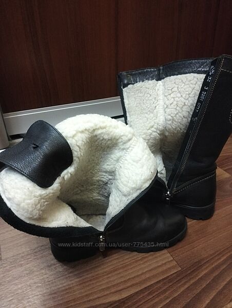 Зимові чобітки для дівчинки в чудовому стані. Дуже зручні. Підійдуть також і на худеньку ніжку, так как можна регулювати шнурівку. Матеріал натуральна шкіра, темно коричневого кольору. Натуральне хутро. Розмір 34. Розмір устілки 23см.Другие объявления продавца