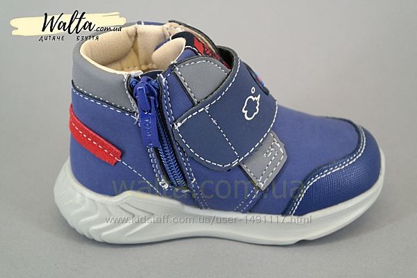 Розпродаж!Оригинальные синие ботинки для мальчика весна/осень. Практичные, удобные, легкие. Продаются в индивидуальной фирменной коробочке. Подходят на любой подъем и полноту ножки. На липучке, сбоку замочек. Верх натуральный нубук, середина комбинированная кожа. Передок прорезинен (защита от сбивания).