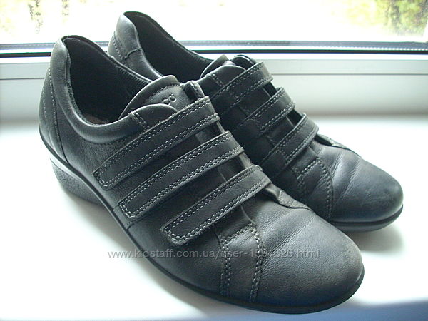 Туфли (натуральная кожа) ТМ ECCO в отличнейшем состоянии, размер 38, по стельке 25см. На трех плотных липучках.Очень мягкие, удобные, комфортные. Очень удобная танкетка.Подошва в ооочень хорошем состоянии.