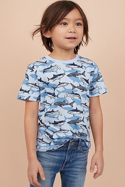 Подробное описание: H&M Футболочка с акулами для 4-6 лет