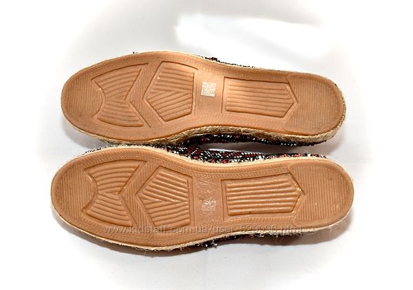Очень красивые эспадрильи, джутовая оплетка, верх - джут, текстиль. Подошва каучук. Размер указан 37 (маломерные), реальный размер на 36-36.5 Длина по стельке 23 см. Заказывались с сайта Next (Израиль) Обувала пару раз