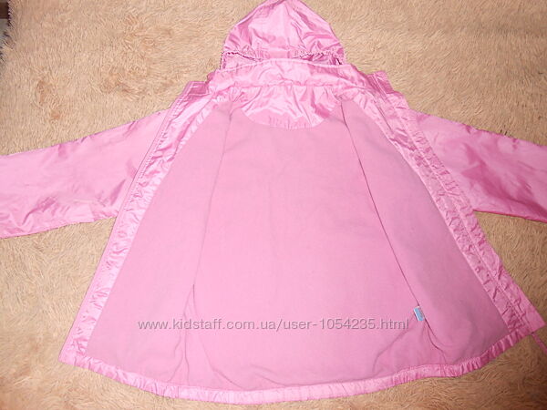 3. Ветровка-дождевик розовый на рост 152 см., на возраст 11-12 лет "Millets value": длина рукава вместе с плечиком - 66 см., ширина под рукавчиками - 50,5 см., длина от плечика - 63 см. Застегивается на змейку, с капюшоном. На капюшоне, внизу рукавчиков и куртки широкая резиночка, по бокам два кармашка на липучках, внутри флисовый утеплитель, дождевичок плотненький. Материал: 100% полиэстер. Цена: 200 грн.