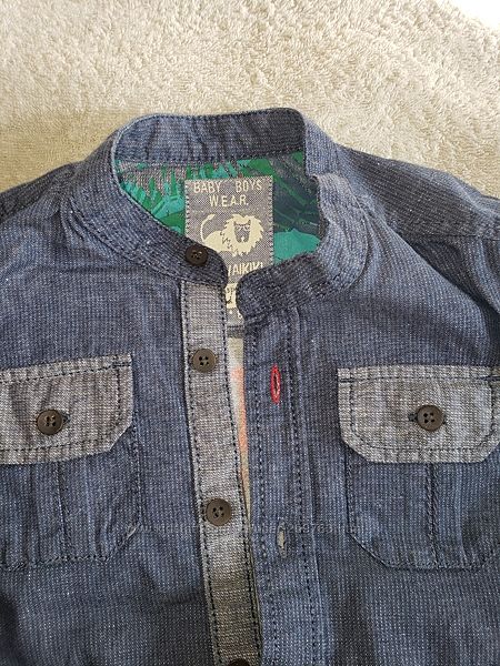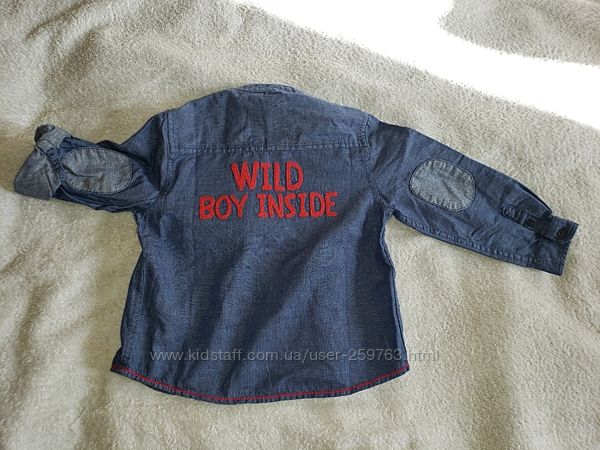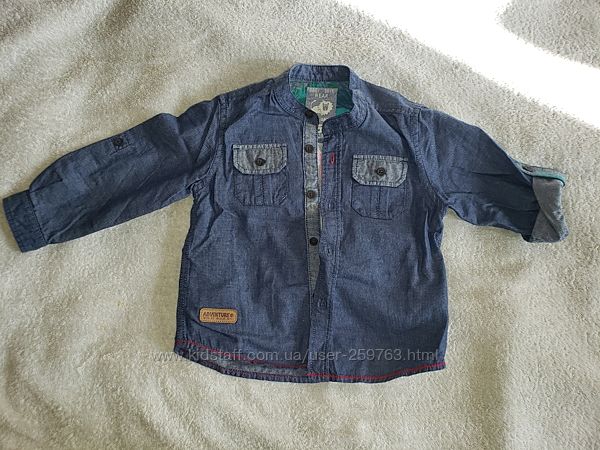 Красивая стильная рубашка , 12-18 м. по бирке. Чуть большемерит. Качество супер . 100% котон Абсолютно новая вещь, но срезали бирки.рукав 29см, длина 40см, ширина 31.5см