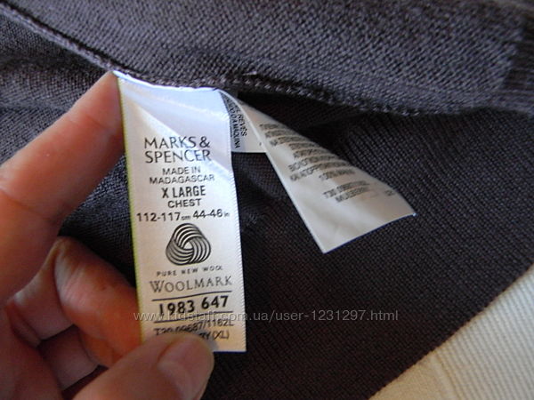 Подробное описание: Мужской джемпер Marks&Spencer р. XL шерсть 100