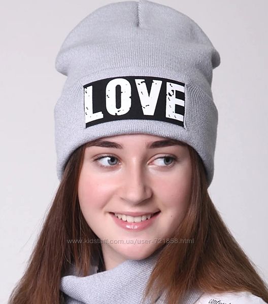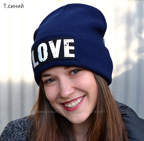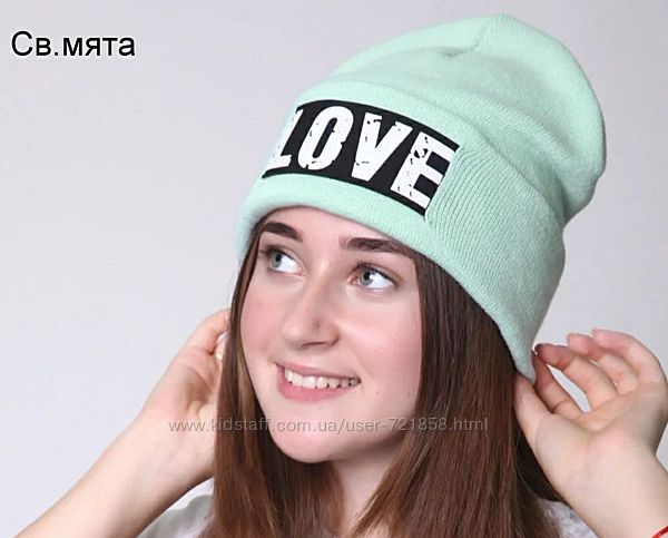 Шапка Love подвійна, з відворотом.Завдяки подвійній в´язці та відвороту, шапка добре гріє, тому її можна вибрати на пізню осінь та неморозну зиму.
