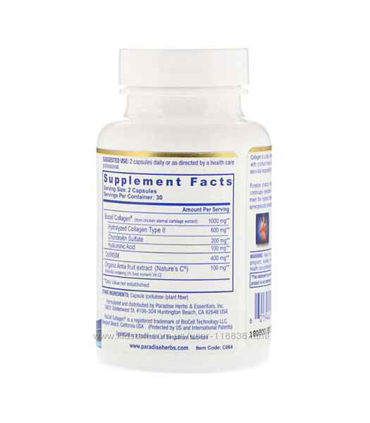 Подробное описание: Paradise Herbs, Коллаген Экстрим, BioCell Collagen, 60/120 капсул