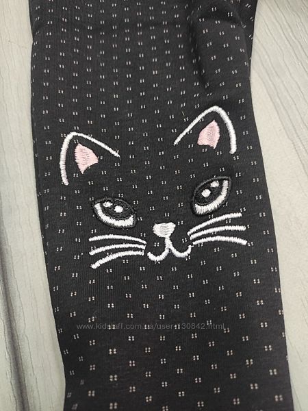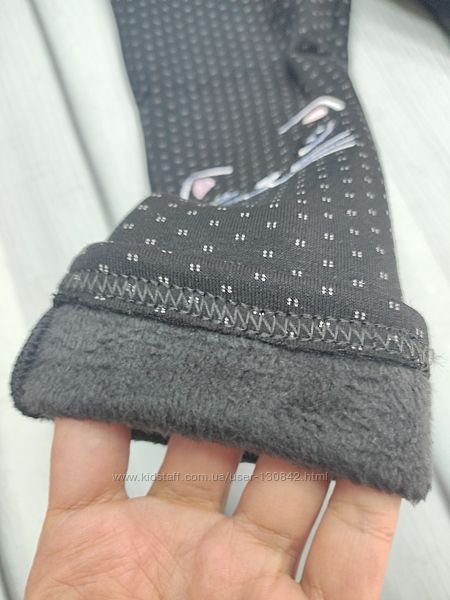 Леггинсы лосины утепленные для девочки.Впереди вышивка кошечки.