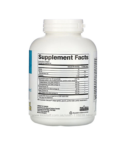 Подробное описание: Natural Factors, RxOmega-3, Омега для жінок, 120 капсул