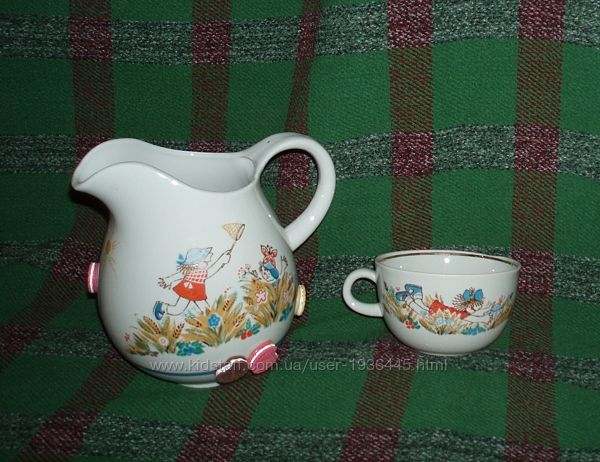 Подробное описание: Винтаж фарфор детская посуда тарелка чашка кувшин Барановка