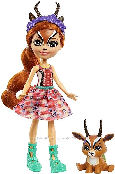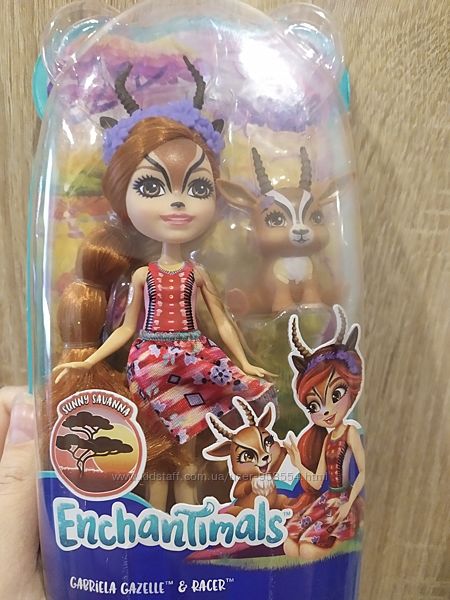 2. Фото 4-7 цена 500грн Enchantimals Gabriela Gazelle Doll (6-In/15.2-cm) & Racer Animal Friend Figure Оригинал Пересылаю УП НП Джастин Это новый набор из серии Солнечная Саванна с куклой Габриэла Газель с питомцем по имени Гонщик – они всегда вместе и похожи друг на друга. Кукла Gabriela Gazelle ( ростом 15,2 см. ) – милая куколка, которая носит модную съемную юбку, головной убор в виде венка из цветов и сапожки. У Габриэлы и Рейсера есть одинаковые детали, такие как очаровательные полосы и рожки. Игровой набор создан для увлекательной игры, особенно кто любит животных. Является отличным подарком для детей от 3 лет