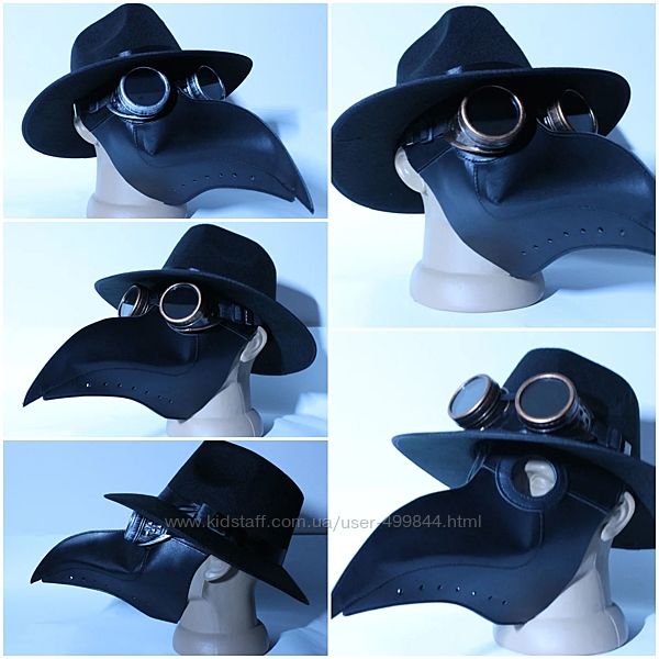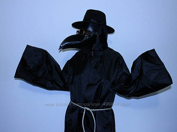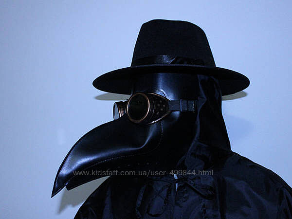 Популярный винтажный костюм Чумной Доктор смерть или Чумного доктора максимально похожа на образ доктор смерть или голову птицы ворона, клювовидная с большим клювом и блестящими глазами птицы. Костюм в популярном стиле стимпанк для Хэллоуина, маскарада и карнавала укомплектован плащом с капюшоном и рукавами на рост от 160 см и до 190 см, и пояс в виде натуральной веревки длинной 160 см и маска Чумного доктора, очки гогглы разборные в стиле стимпанк и шляпа черного цвета с большими полями. Маска чумного доктора черного цвета изготовлена из искусственной кожи с полу-матовым покрытием, глазницы маски без линз. Крепление маски Чумной доктор и очков гогглы разборные стимпанк с помощью широкой текстильной резинки позволяет применять маску доктор смерть на любой размер головы.Отправляем новой почтой наложенным платежом с предоплатой 250 грн. Остальная сумма будет наложенным платежом!