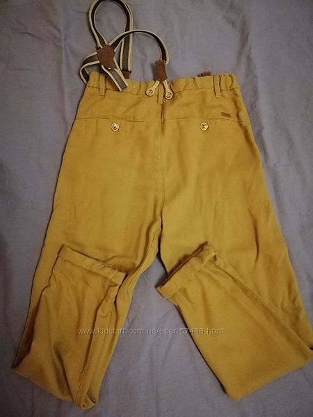 Стильные штаны с подтяжками, одеты один раз.Цвет - горчичный. Подтяжки - серыеЗамеры по запросу.