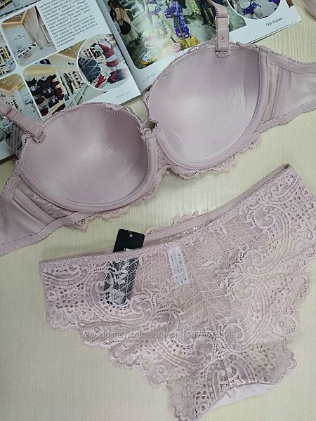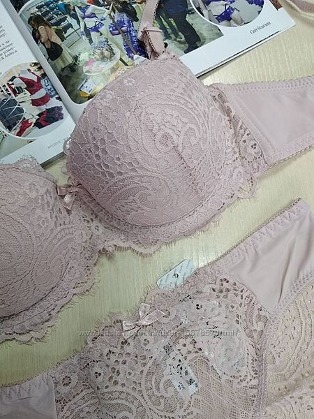 Бюстгальтер Анжелика рush-up с формованными чашками, съёмные бретели,по объему прошит силиконовой лентой. В комплекте трусики бразилианы.Производитель Китай.