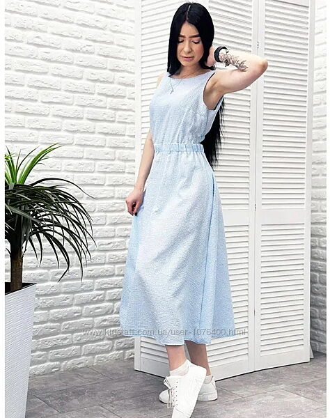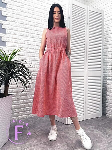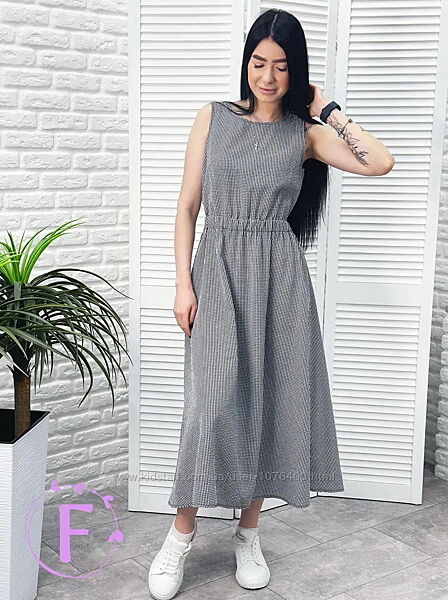 Розміри 42-44, 46-48, 50-52. Наявність розмірів уточнюйте. Відправка зі складу Новою поштою та Укрпоштою. Оплата на карту. Модель має напіввільний верх, відрізну талію на резинці та вільну довгу спідницю А-силуету. У бічних швах спідниці сховані кишені. А на спинці в області талії є спокусливий виріз. Сезон: Літо Довжина по спинці: 126-128 см Матеріал: коттон-жатка