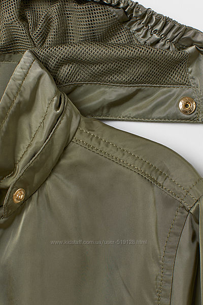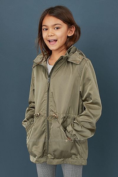 В наявності легка парка для дівчат, фірми H&M (Швеція)Парка з тканого матеріалуа з блиском. Відстібний капюшон на підкладці з мембрани, по краю на гумці, застібається на кнопки. Невеликий комірець стійка, а також блискавка зпереду. Куліска на талії, та кишені з клапаном на кнопках. Низ рукавів зібраний гумкою. На підкладці з мембрани.