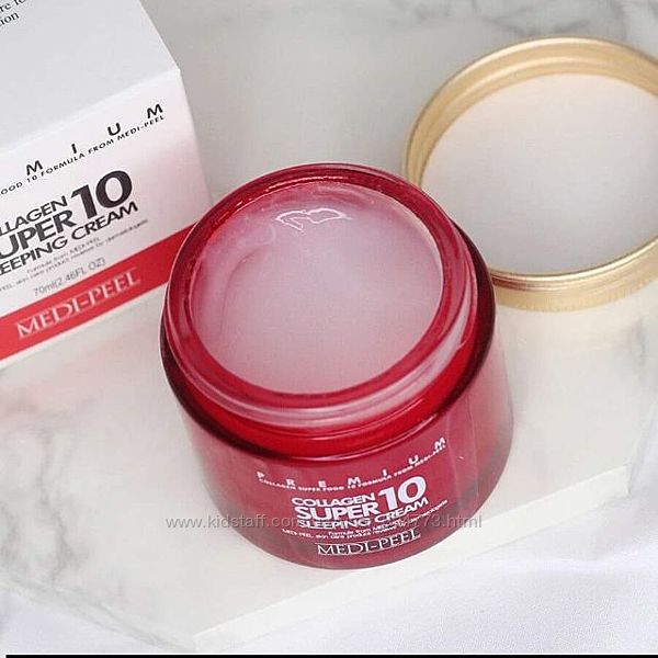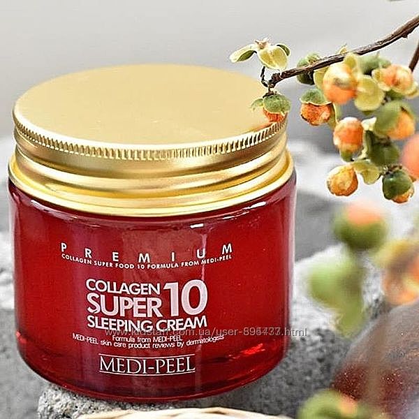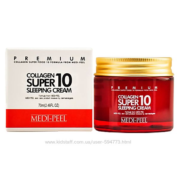 Ночной крем премиум класса для лица с коллагеном Medi-Peel Collagen Super 10 Sleeping Cream повышает упругость кожи и ее плотность, улучшает структуру и текстуру кожи, благодаря чему черты лица подтягиваются, овал становится четче.