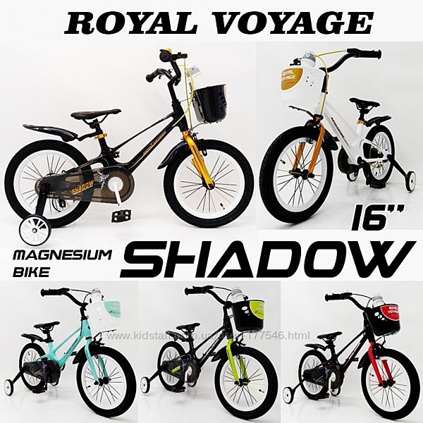 Новинка от торговой марки ROYAL VOYAGE , велосипед SHADOW-16 предназначен для детей от 4 до 9 лет. Велосипед имеет оригинальный, не повторимый дизайн.Прокладка тросиков проходит через специальные отверстия в раме, характерная опция используется в моделях велосипедов премиум класса для взрослых. Рама велосипеда сделана из высокопрочного магниевого (Magnesium) сплава, что делает ее легкой и практичной. Велосипед оснащен передними и задними дисковыми тормозами. Диски колес MERCURY-16 сделаны из алюминиевого сплава. SHADOW-16 – легкий, удобный и практичный современный детский велосипед, который станет неповторимым подарком как для мальчика, так и для девочки.Велосипед SHADOW-16 укомплектован бутылочкой для воды, подножкой, насосом, комплектом ключей для сборки и регулировки велосипеда звонком, крыльями, вспомогательными боковыми колёсами на задней оси велосипеда!