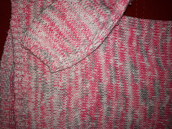 В отличном состоянии без изъян. Качество не скатывается, приятная к телу, плотная вязка, не растягивается и не садится. Одни плюсы. Очень удобная практичная кофточка.Длина 55см