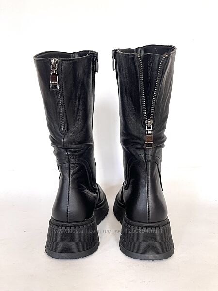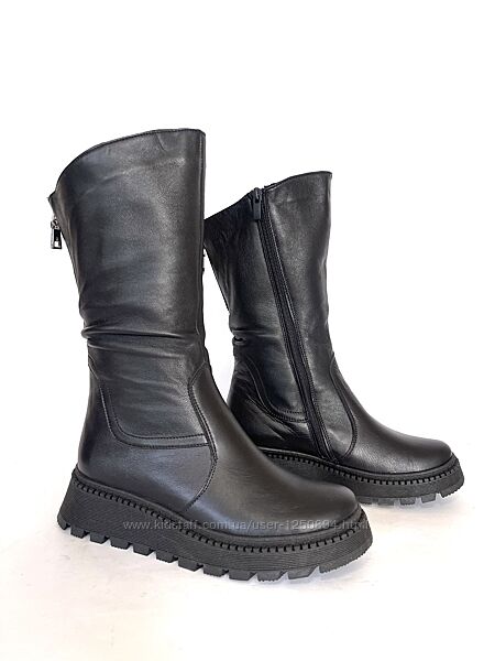 Подробное описание: Новые полусапоги 37 р зимние тёплые на танкетке платформе кожаные чёрные