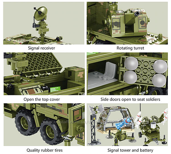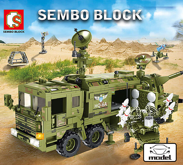 Конструктор Sembo 105780 "Военная система ПВО. Машина с ракетной установкой" 1196 деталейЭлементы конструктора надежно крепятся между собой. Игра с конструктором помогает развивать моторику пальчиков, внимательность, усидчивость, мышление и фантазию.