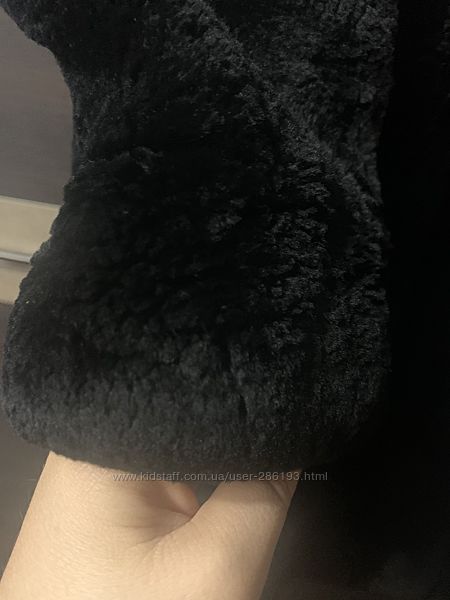 Тёплая шуба из мутона с капюшоном под поясок.Есть два глубоких кармана, один внутренний. По краю капюшона цельная норка, на груди так же встаки из норки.