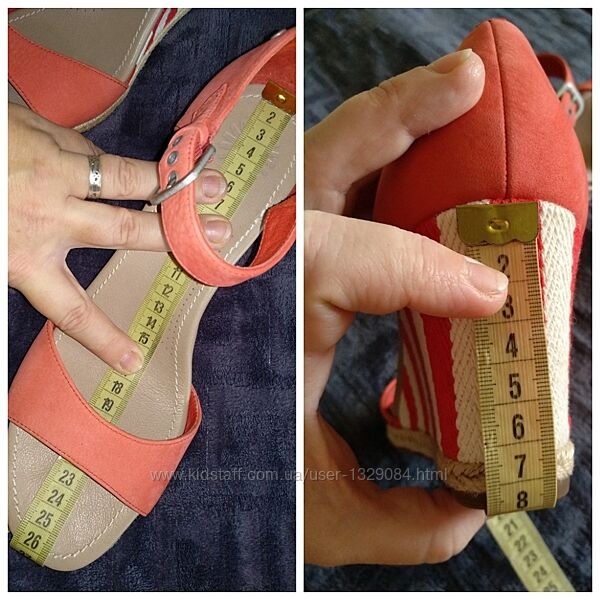 Размер указан Euro 40, UK 7,5. Полная длина стельки от края до края 26 см. Высота танкетки под пяткой 8 см, под носком 2 см.