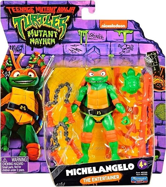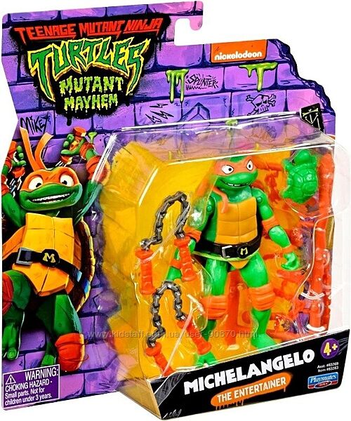 Черепашки ніндзя Мікеланджело Teenage Mutant Ninja Turtles: Mutant Mayhem 4.25” Michelangelo Basic Action Figure.Оригінал від Playmates Toys / Nickelodeon.