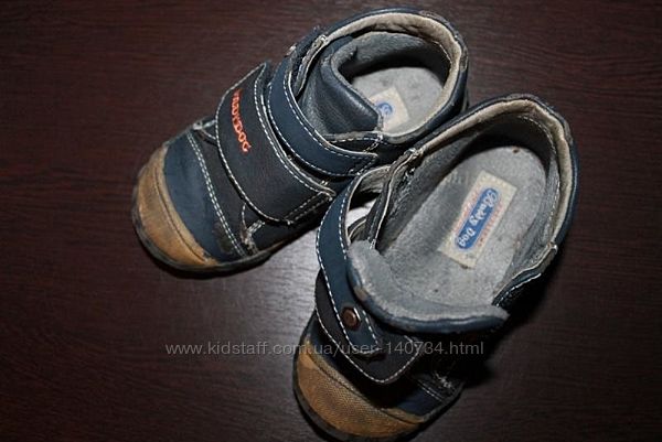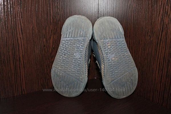 Демисезонные ботинки после моего сына. Отходили в них сезон, состояние хорошее только в нескольких местах треснул и стерся верхний слой эко-кожи. Внутри ботинок серая флисовая подкладка, всерху эко-кожа темно синего цвета. Их очень удобно одевать - застегиваються на липучках. Носок уплотнён. Состав: кожзам