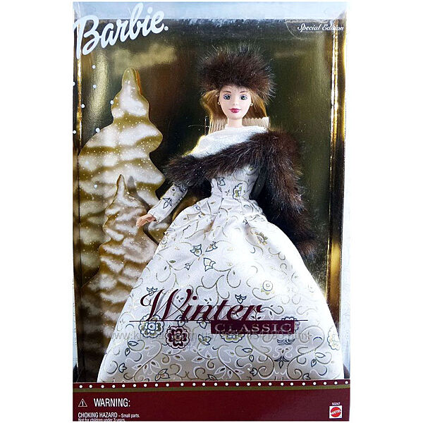 Кукла Барби Коллекционная Зимняя классика 2001 Barbie Winter Classic 50247Кукла в зимнем бальном платье с меховой отделкой и в меховой шапочке. Упакована в подарочную коробку из прозрачного пластика.