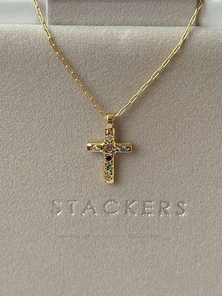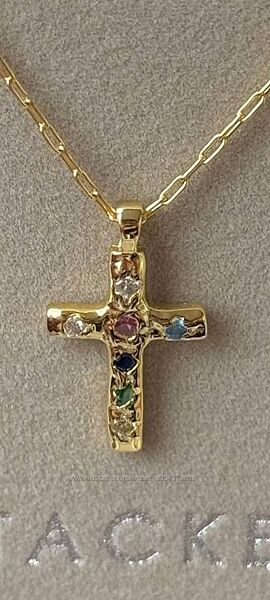 Крестик на цепочке с камнями, украшение серебро в позолоте.