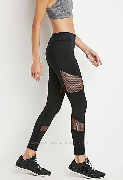 Леггинсы для спорта от американской марки Forever 21. Красивые и стильные. Из эластичной ткани декорированные вставками из сетки. Заказаны с официального сайта. Совершенно новые, с биркой. Сайт ошибочно прислал не мой размер.Размер М