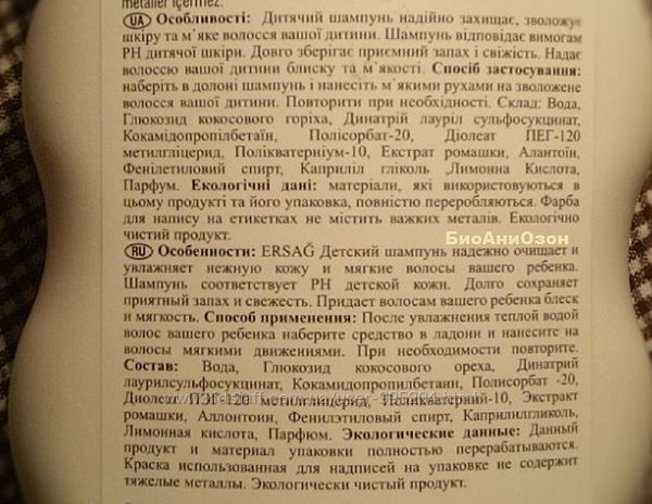 Подробное описание: Детский органический био шампунь от Ersag 163 здоровый блеск и мягкость