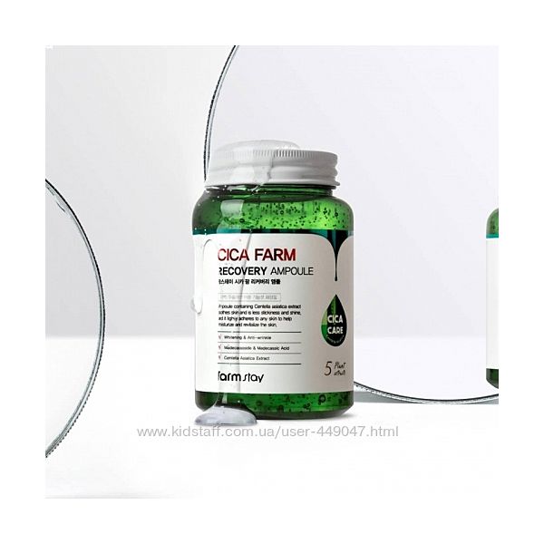 🔥 Многофункциональная ампульная сыворотка для лица с центеллой азиатской FarmStay Cica Farm Recovery Ampoule 250 мл 🔥 +-Сыворотка моментально увлажняет сухую кожу, устраняет шелушение и чувство дискомфорта.