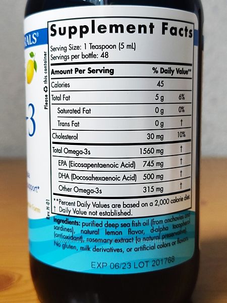 "Омега-3" від компанії Nordic Naturals містить 1560 мг омега-3 жирних кислот на порцію, що набагато перевищує рекомендовану експертами дозування (500 мг на день). Прийом достатньої кількості омега-3 забезпечує якісне харчування та покращення загального самопочуття, у тому числі покращення роботи серця та мозку. Крім того, підвищується настрій, покращуються когнітивні функції та зміцнюється імунітет.