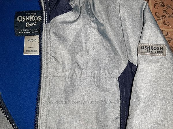 Ветровка на флисе 5-6лет OSHKOSH, из США.Непродуваемая, водонепроницаемая.На манжетах липучки.