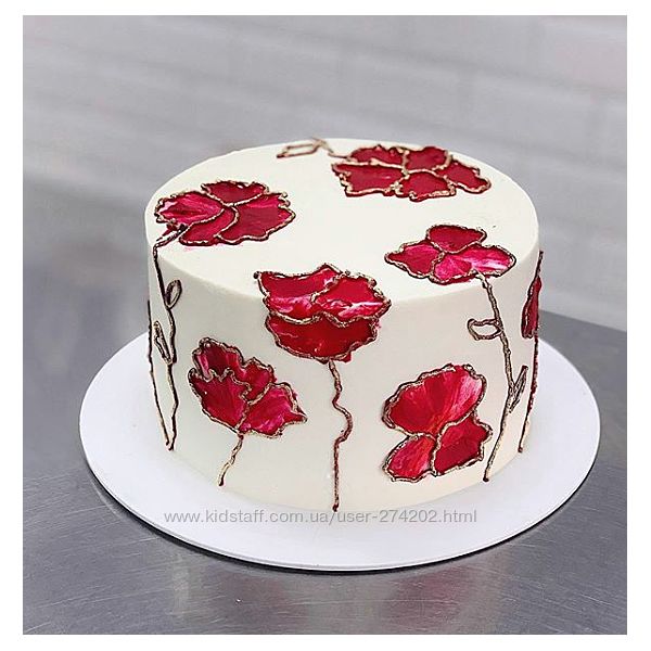 Оформление торта в стиле витраж красными маками