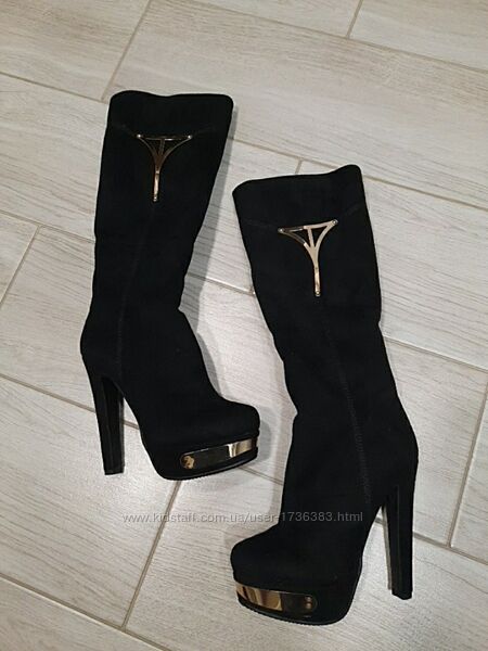 Сапоги чёрные новые, экозамш и экомех , размер 38 , цена 300 грн. Новые