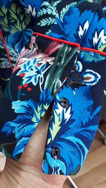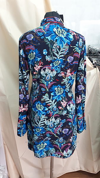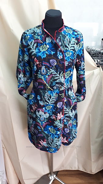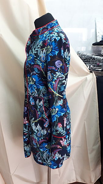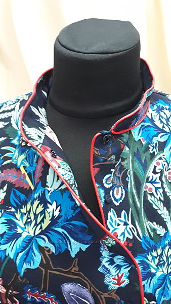 Очень оригинальное платье,имитация пиджака, кафтана, красиво оформлен рукав, 2 боковых функциональных кармана, широкий манжет на кнопках, сбоку платья молния, впереди не расстегивается, только воротник на пуговице и кнопке,отрезная талия.Платье обработано красным кантом, сзади рельефные вытачки, красиво подчеркивают фигуру.Размер указан 40, идёт на М, мерки: плечи 42 см, рукав 65 см( с манжетом), грудь 51 см, талия 41 см, длина 87 см , манжет на рукаве 12 см( можно подворачивать).
