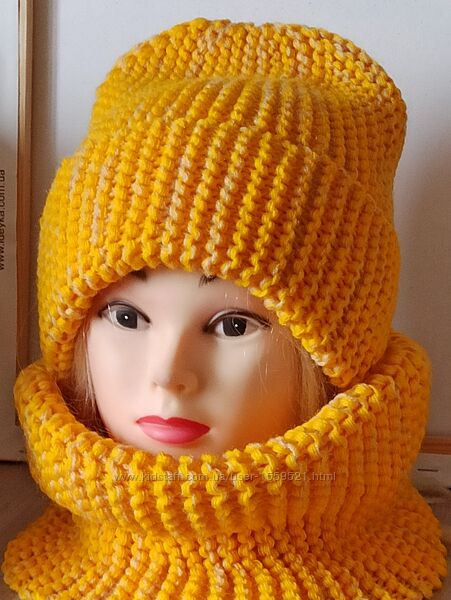 Подробное описание: Шапка з відворотом і снуд-комір 3 кольори